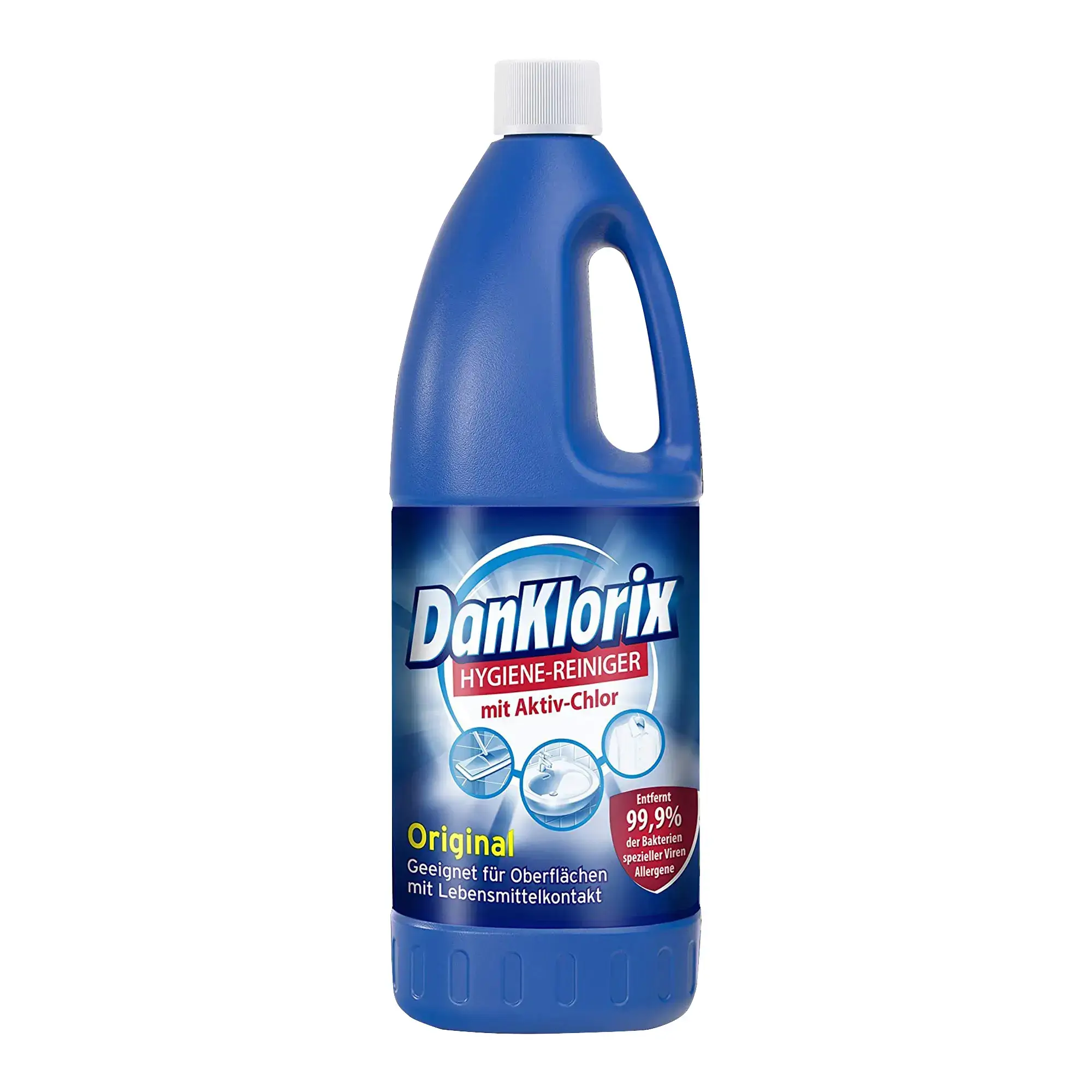 Der Dan Klorix Hygiene-Reiniger mit Aktiv-Chlor ist ein vielseitig einsetzbarer Allrounder für den gesamten Haushalt und Außenbereich. Ob zum Reinigen, Desinfizieren oder Entfärben – Dan Klorix überzeugt durch seine starke Wirksamkeit und entfernt zuverlässig 99,9 % der Bakterien, Keime und Schimmelpilze. Mit seiner zertifizierten Desinfektionswirkung ist er ideal für hygienisch anspruchsvolle Bereiche in Küche, Bad, Wohnraum und Garten.