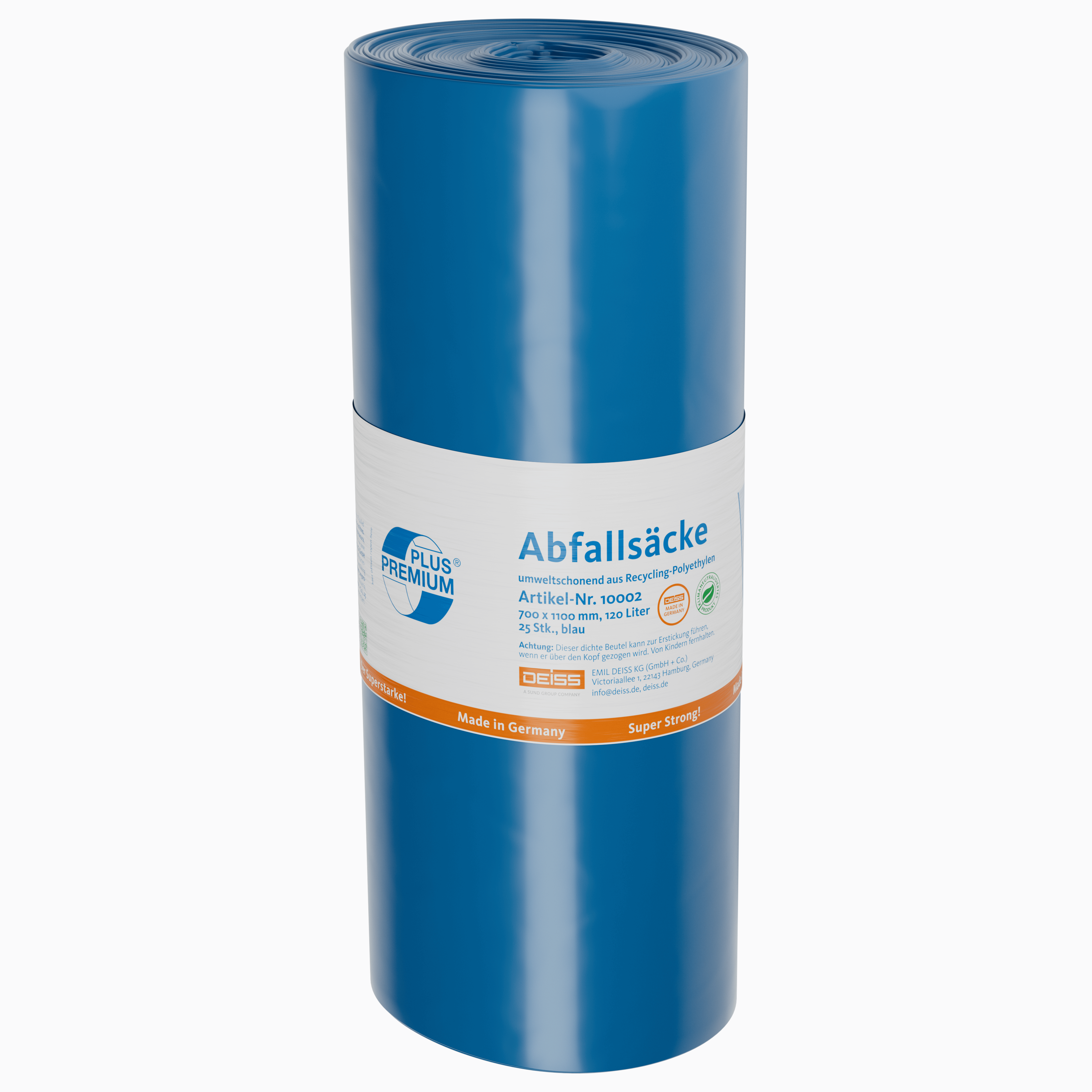 DEISS PREMIUM PLUS Müllsäcke 120 Liter, Blau aus LDPE