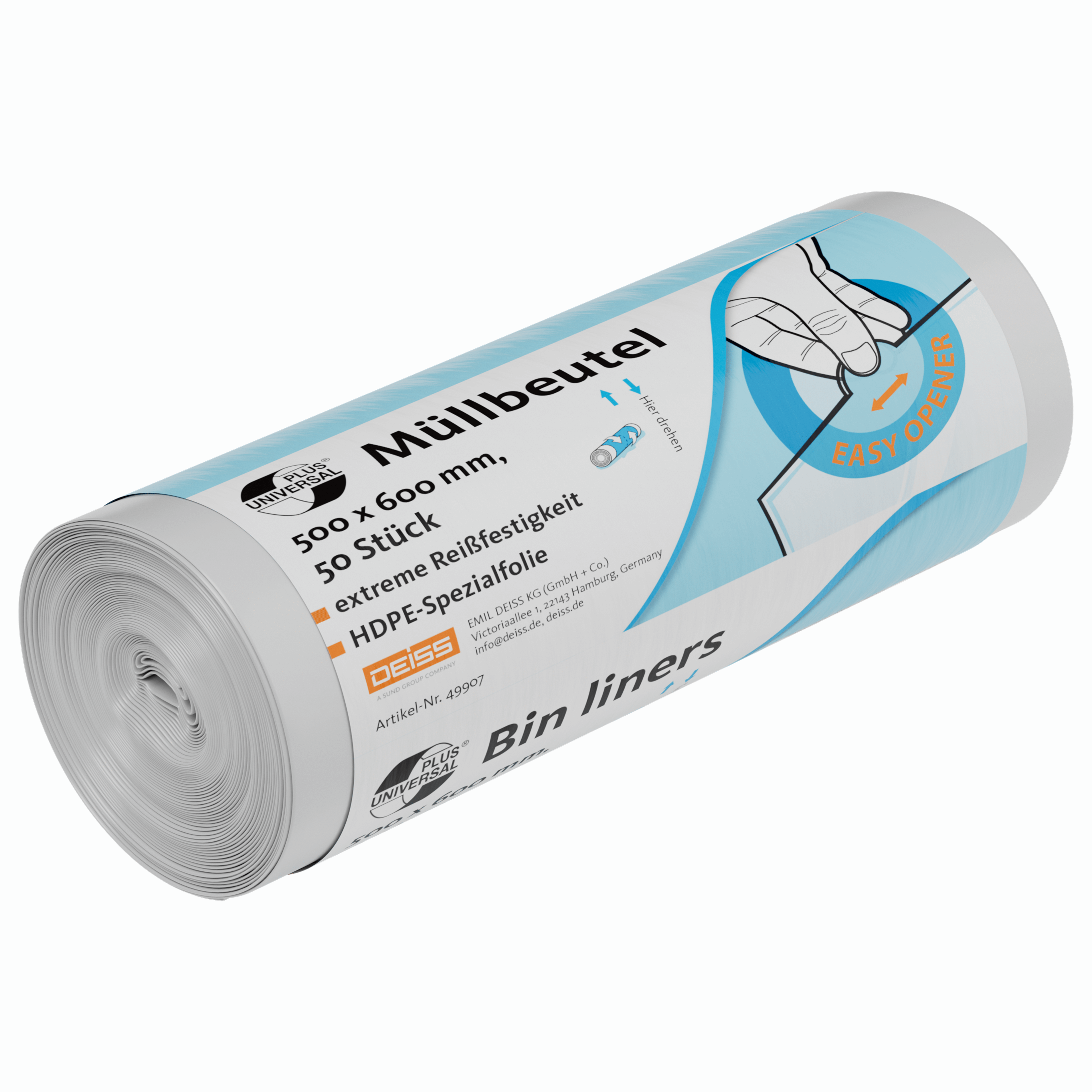 Die DEISS UNIVERSAL PLUS Müllbeutel 49907 eignen sich hervorragend für den Einsatz in Haushalten, Büros, Gastronomie, und überall dort, wo eine zuverlässige und stabile Entsorgungslösung gefragt ist. Dank der transparenten Farbe können Inhalte leicht erkannt und getrennt entsorgt werden.