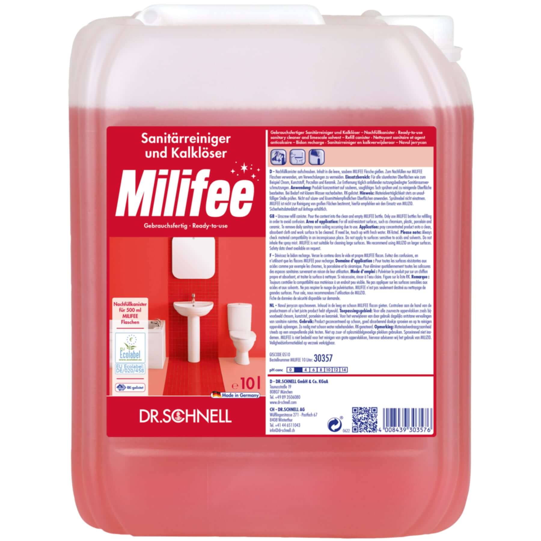 Mit DR.SCHNELL MILIFEE entscheiden Sie sich für einen leistungsstarken, umweltfreundlichen Sanitärreiniger, der strahlenden Glanz hinterlässt und dabei einfach in der Anwendung ist – ideal für den täglichen Einsatz in privaten Haushalten und gewerblichen Bereichen.