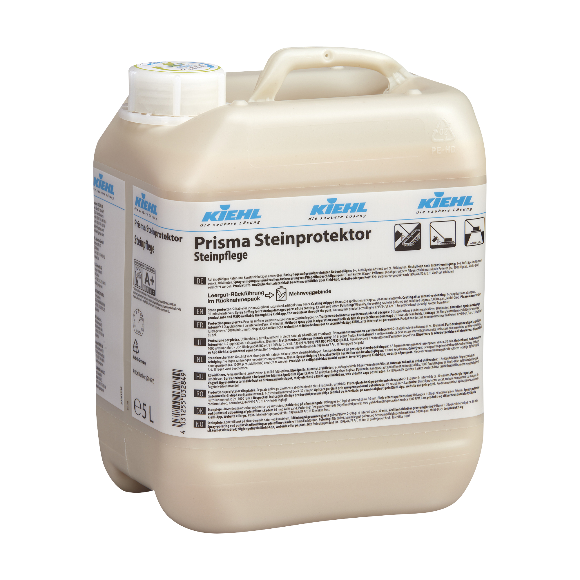 Der Kiehl Prisma Steinprotektor ist eine hochwertige Steinpflege, die speziell für den Schutz und die Pflege von Steinoberflächen entwickelt wurde. Durch Polieren mit einer High-Speed-Maschine (ca. 1000 U/min) wird ein hochglänzender, strapazierfähiger und begehsicherer Pflegefilm erzeugt, der Begehspuren mühelos beseitigt. Gleichzeitig bietet der Steinprotektor hervorragende Filmbildeeigenschaften und ermöglicht eine Teilentschichtung im Rahmen der Intensivreinigung ohne den Einsatz von Grundreinigern.