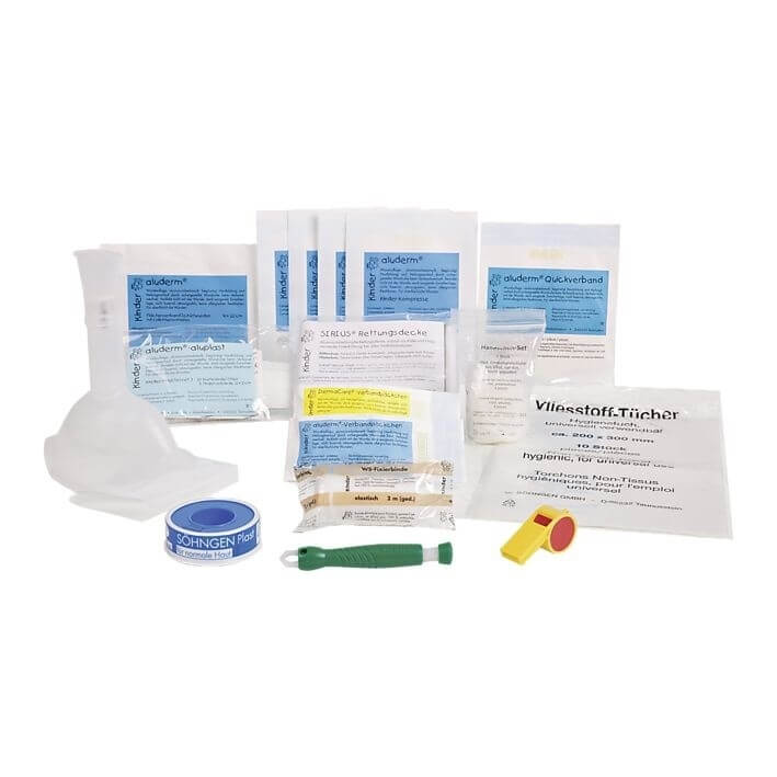 - Kindgerechte Erste-Hilfe-Ausstattung: Speziell auf die Bedürfnisse von Kindergartenkindern abgestimmte Verbandstoffe und Materialien in angepassten Größen.