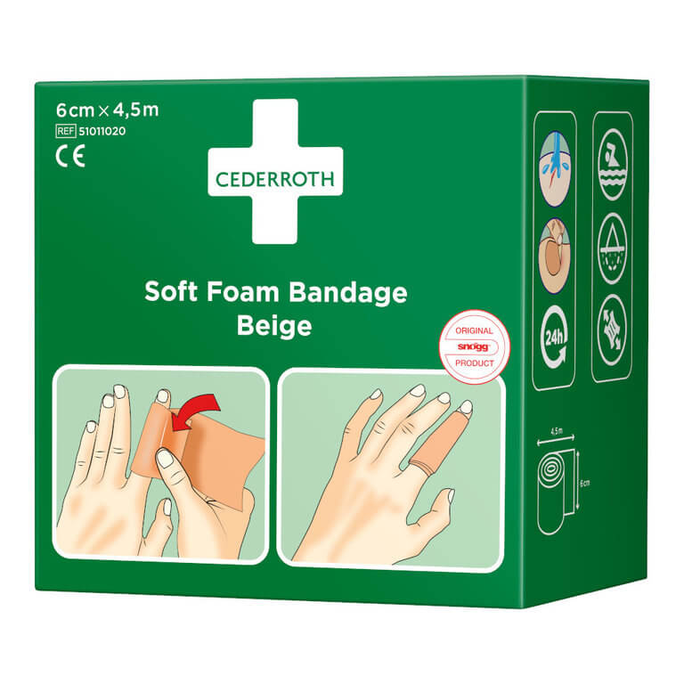 Cederroth SOFT Foam Bandage in Hautfarbe ist ein elastisches Pflaster und Verband zugleich, das sich optimal für kleinere Wunden eignet. Es kann einfach an Fingern, Händen, Armen, Zehen, Füßen oder Beinen angewendet werden. Der wasserfeste Schnellverband hält zuverlässig, auch wenn er nass wird, und lässt sich zudem mit Salben kombinieren oder direkt auf die Wunde legen. Dank seiner hohen Elastizität bleibt die Beweglichkeit vollständig erhalten.