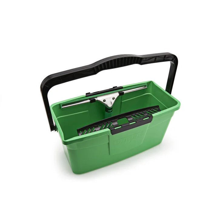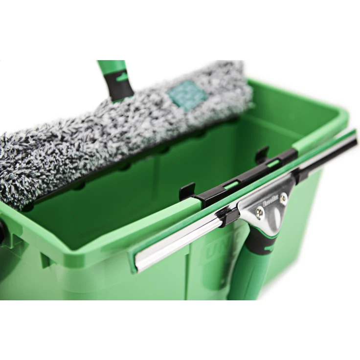 Der UNGER Fensterputzeimer, 12 Liter wurde speziell für höchste Ansprüche in der Glas- und Fensterreinigung entwickelt. Mit seiner kompakten und funktionalen Bauweise erleichtert er das Arbeiten und bietet optimalen Komfort für professionelle Anwender. Dank seiner schmalen Form lassen sich alle wichtigen Reinigungsutensilien wie Fensterwischer und Einwascher bequem verstauen.